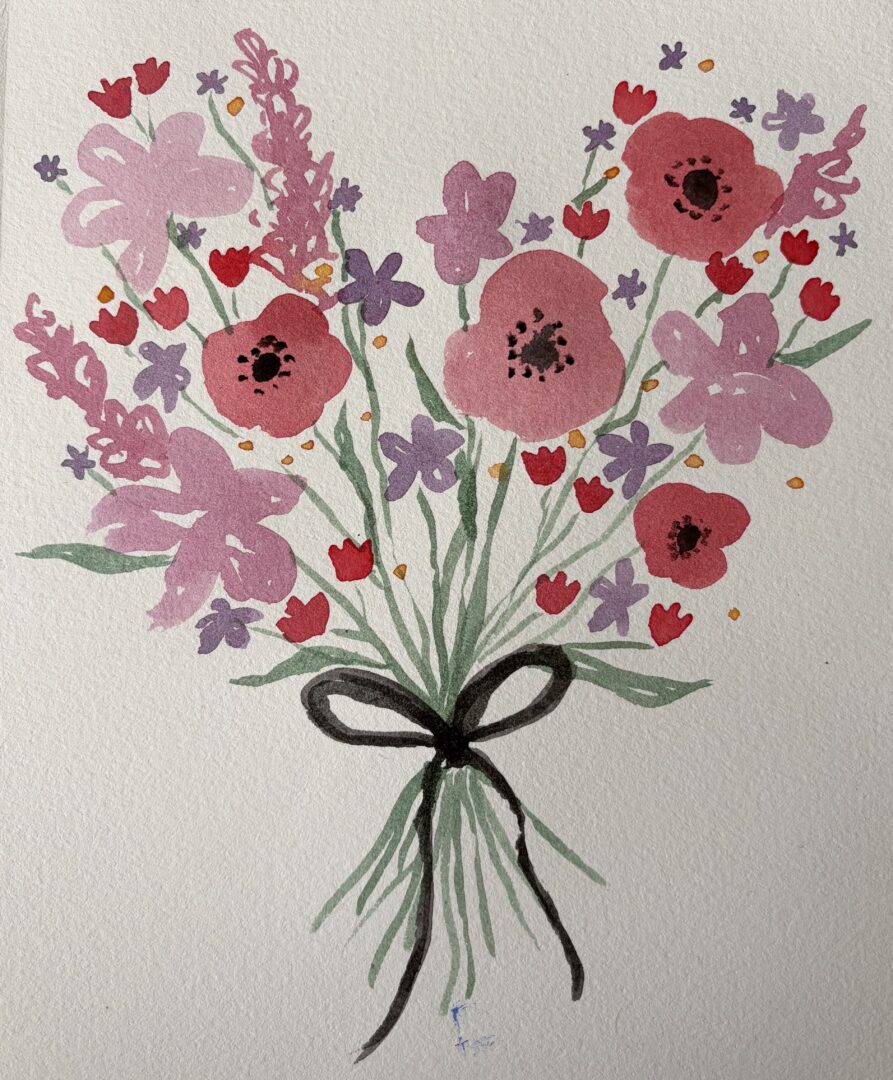 THE FRIDAY, FEBRUARY 13 WATERCOLOR REFERENCE PAINTING WILL BE “BOUQUET FROM THE HEART” SHOWN BELOW. FRAME IT FOR VALENTINE’S DECOR OR A GIFT.